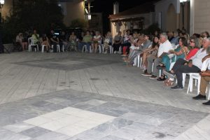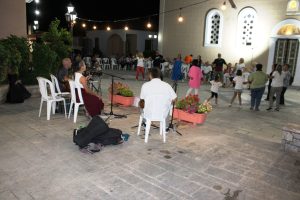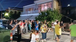 Από νωρίς το βράδυ, το συγκρότημα ξεκίνησε μια μουσική πομπή μέσα από τα στενά, πλακόστρωτα σοκάκια του παραδοσιακού οικισμού. Η ζωντανή μουσική, οι μελωδίες και οι ρυθμοί παρέσυραν τον κόσμο σε ένα αυθόρμητο γλέντι. Όλοι μαζί, τραγουδώντας και χορεύοντας, πλημμύρισαν τους δρόμους με κέφι και χαμόγελα, δημιουργώντας μια αξέχαστη ατμόσφαιρα.