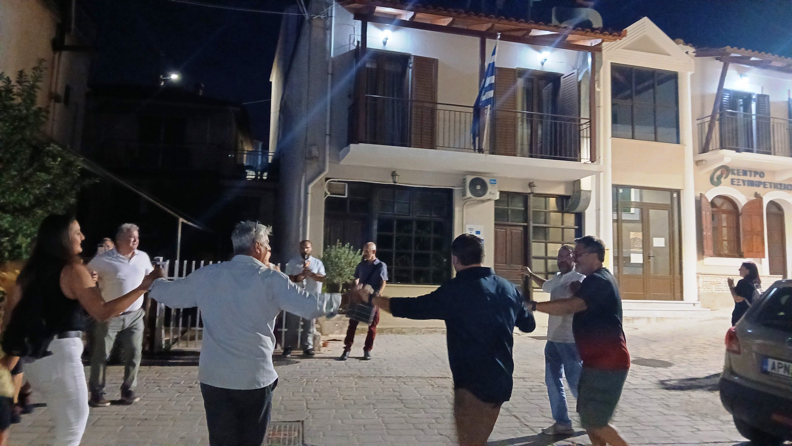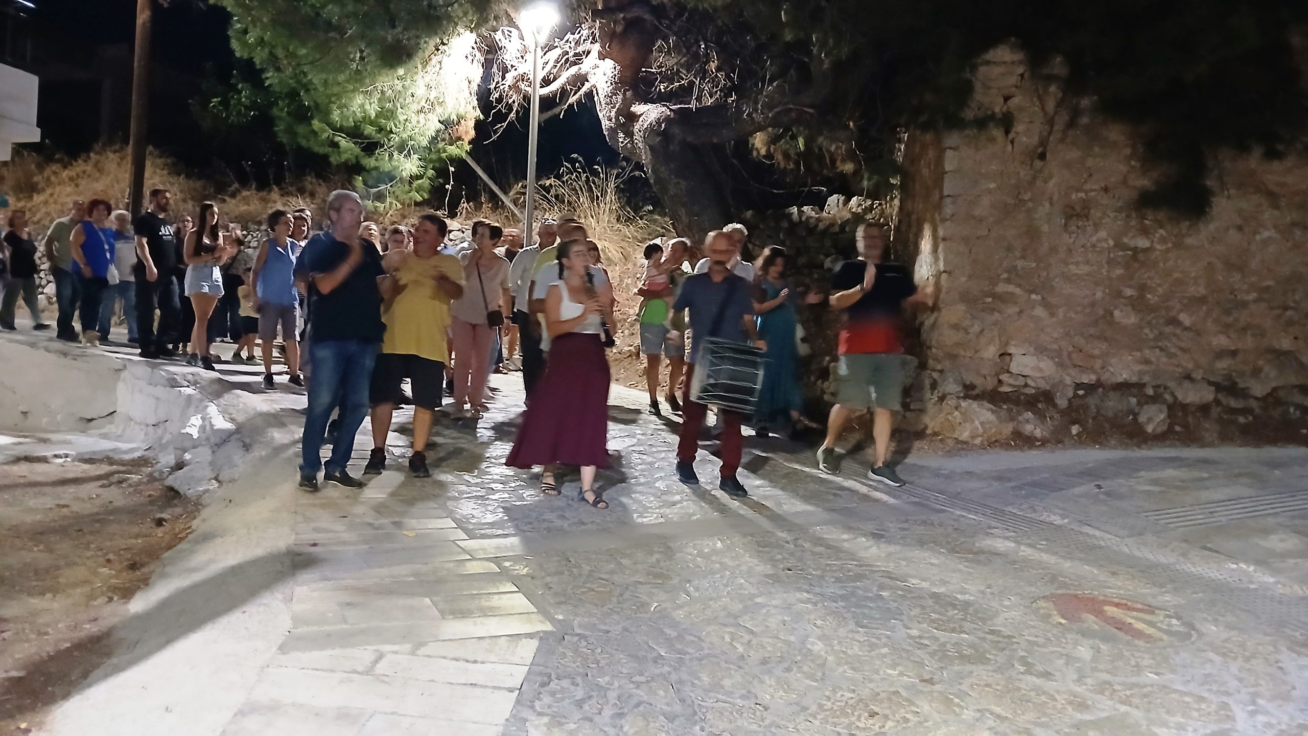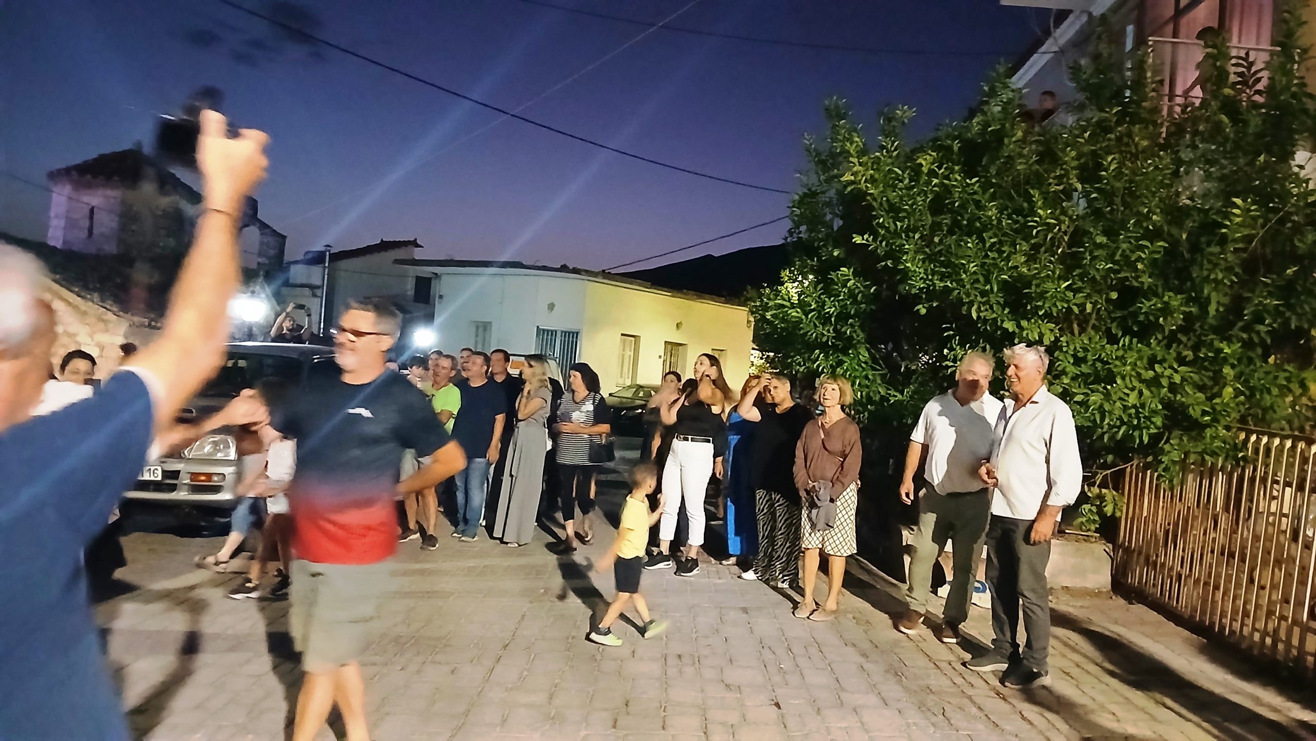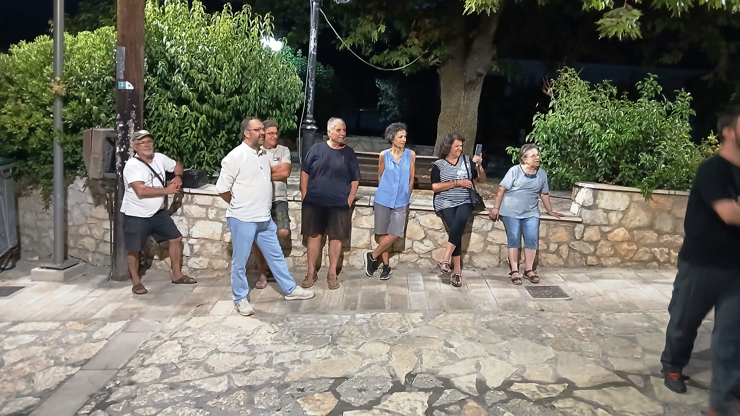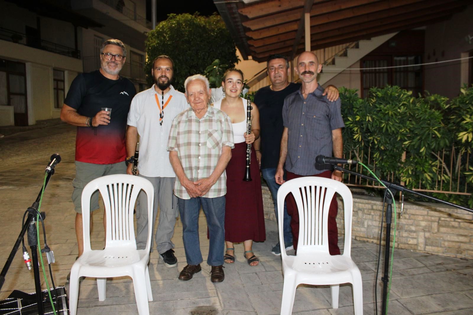 Από νωρίς το βράδυ, το συγκρότημα ξεκίνησε μια μουσική πομπή μέσα από τα στενά, πλακόστρωτα σοκάκια του παραδοσιακού οικισμού. Η ζωντανή μουσική, οι μελωδίες και οι ρυθμοί παρέσυραν τον κόσμο σε ένα αυθόρμητο γλέντι. Όλοι μαζί, τραγουδώντας και χορεύοντας, πλημμύρισαν τους δρόμους με κέφι και χαμόγελα, δημιουργώντας μια αξέχαστη ατμόσφαιρα.